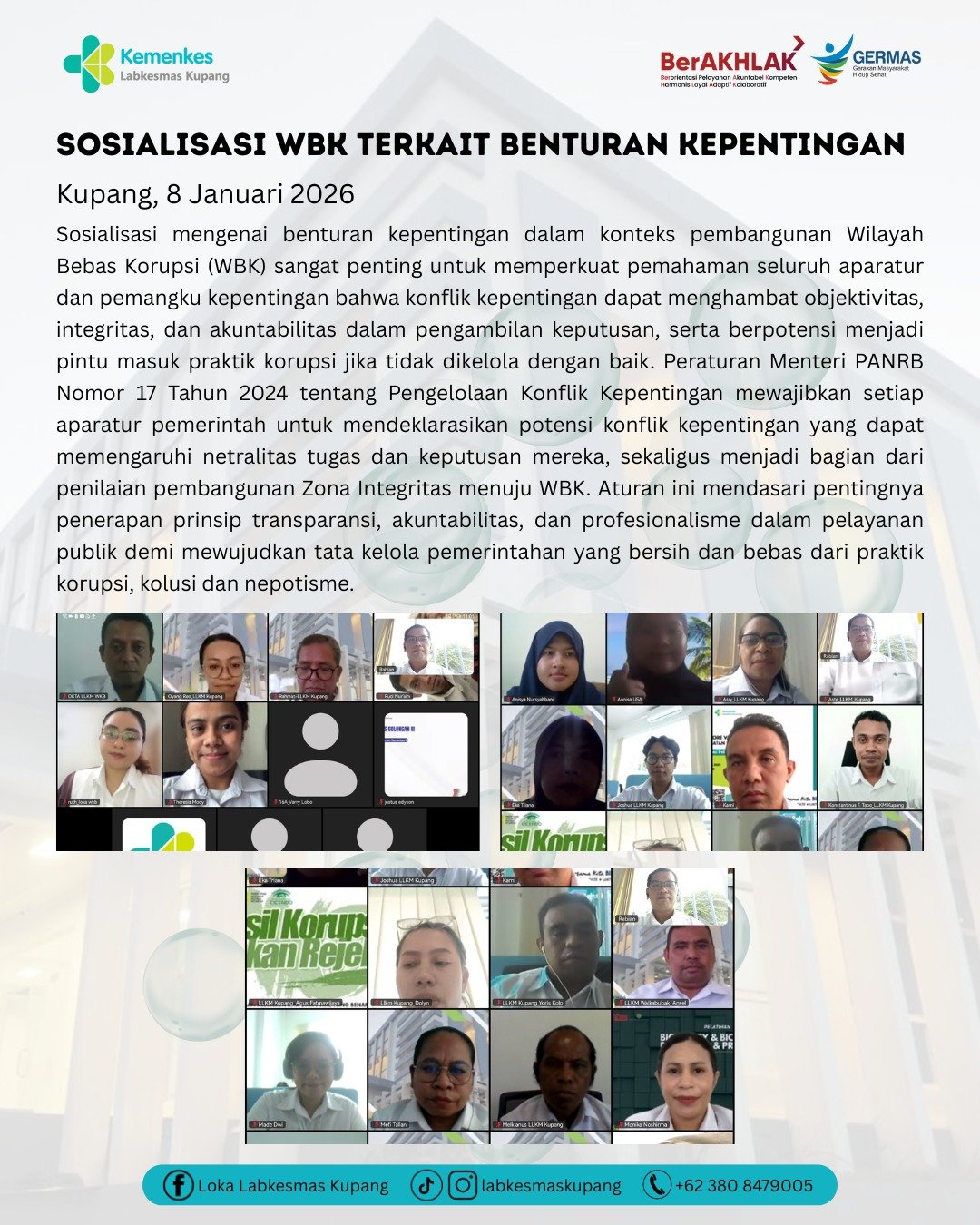Sosialisasi mengenai benturan kepentingan dalam konteks pembangunan Wilayah Bebas Korupsi (WBK) sangat penting...