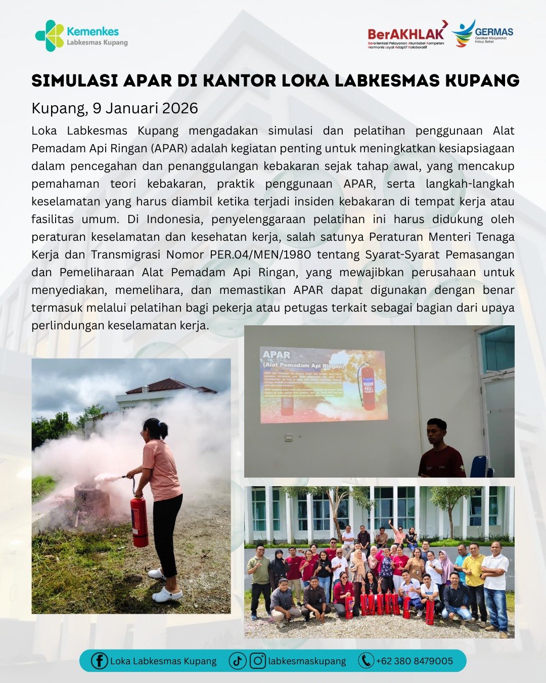 Loka Labkesmas Kupang mengadakan simulasi dan pelatihan penggunaan Alat Pemadam Api Ringan (APAR)...